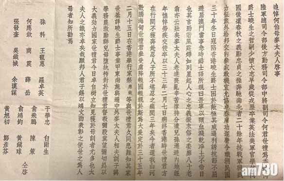 不過,何東的港島大宅就遭日軍侵佔,何妻麥秀英及一眾老弱婦孺只能屈居工人房或工作室,不肯與日軍合作的何東子女淪為階下囚。1944年2月7日,麥秀英病逝,那時何東仍避居澳門,身在內地的兒子何世禮在前線領軍抗敵無法奔喪,麥秀英喪禮只能從簡。