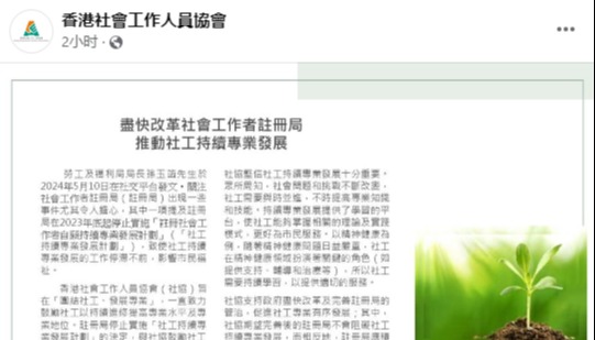香港新聞網5月14日電 香港特區政府擬向立法會提交《2024 年社會工作者註冊(修訂)條例草案》,以完善社會工作者註冊局的管治。香港各界14日發表聲明,支持是次政府對社工註冊局的改革及完善管治,希望可盡快完成條例修訂,促進社工專業有序發展。 香港遊樂場協會作為青少年福利服務機構對改革表示支持。認為充分體現未來註冊局的廣泛及均衡參與,同時保證專業性,能有效聽取社會各界聲音,吸納各界意見。并可幫助社工適應不斷變動的社會形勢,持續推動專業發展。