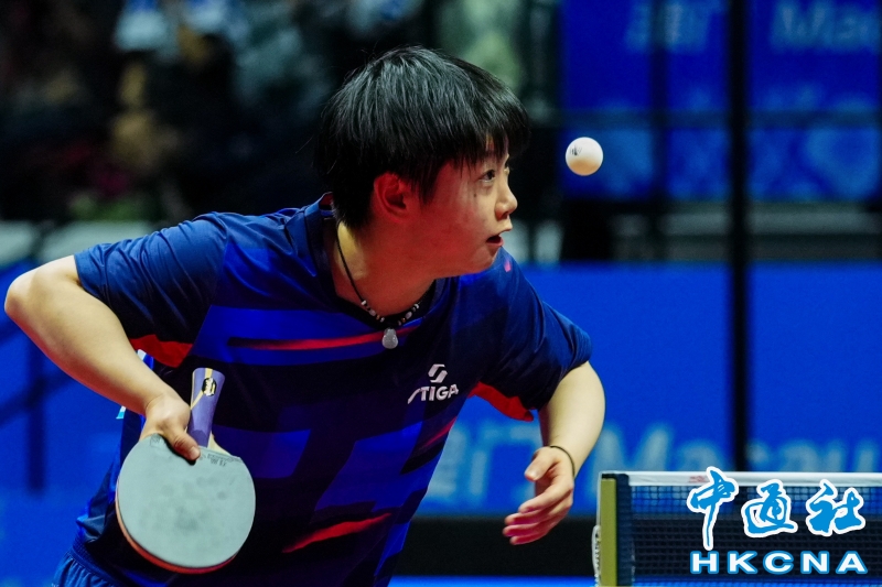 •   11月12日,河北隊孫穎莎在澳門銀河綜藝館舉行的第十五屆全國運動會乒乓球女子單打比賽中,以4比1戰勝山東隊王曉彤,晉級八強。 香港中通社圖片