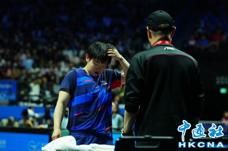 •   11月12日,河北隊孫穎莎(左)在澳門銀河綜藝館舉行的第十五屆全國運動會乒乓球女子單打比賽中,以4比1戰勝山東隊王曉彤,晉級八強。 香港中通社圖片