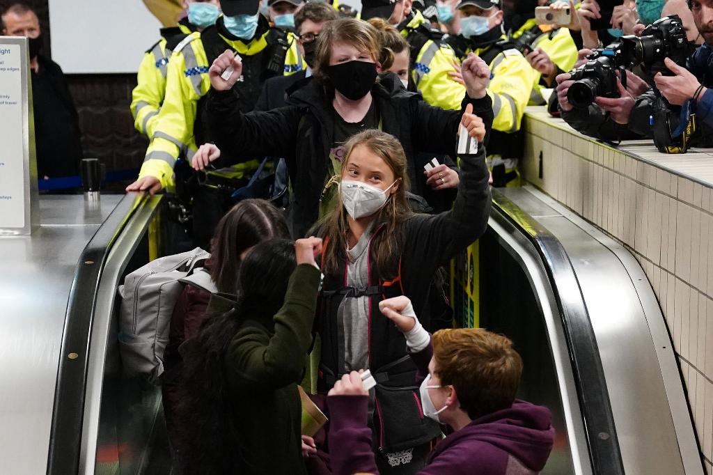 當地時間10月30日晚,通貝里坐火車抵達格拉斯哥,數百人前往迎接。“終於來到格拉斯哥參加COP 26,感謝你們的熱情迎接......”通貝里在自己的推特上“曬出”翹大拇指的照片,還寫下這麽一段話。 為了護送通貝里,維持秩序,格拉斯哥當地出動十余名警察,緊緊地將她圍在中間。