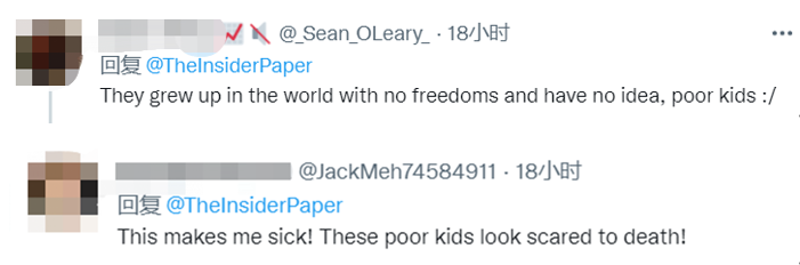 網友評論 也有美國網友“假惺惺”地“可憐”中國孩子:“他們在一個沒有自由的世界長大,也沒有自己的想法,可憐的孩子。”“這讓我很不舒服!這些可憐的孩子看上去要嚇死了!”