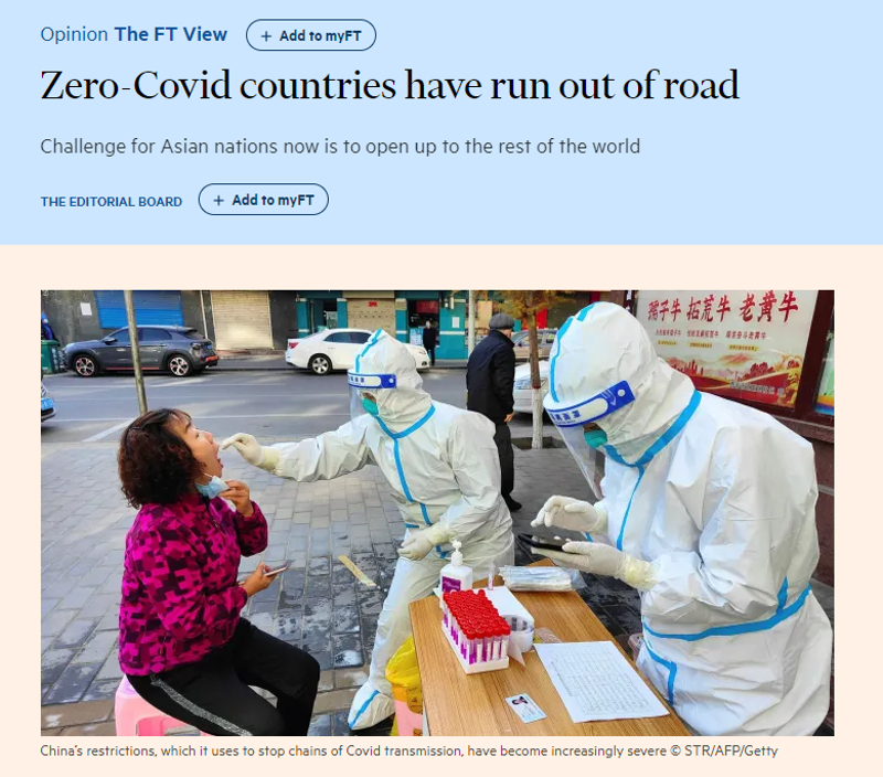 香港新聞網11月17日電 本國抗疫一團糟,英媒還有空唱衰中國的抗疫政策? 英國《金融時報》近日發表《堅持“病毒清零”的國家已“無路可走”》一文,並配了張中國的防疫圖。