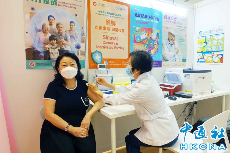•   香港特區律政司司長鄭若驊資深大律師11月18日在渣華道體育館社區疫苗接種中心接種第三劑科興新冠疫苗。 香港中通社圖片
