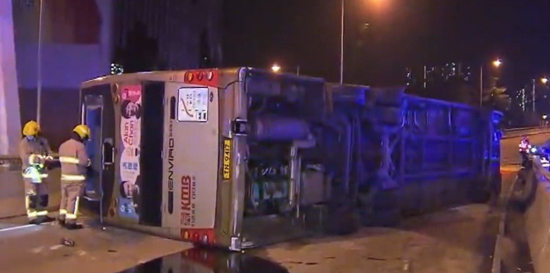 香港一輛巴士翻側至少一死十傷