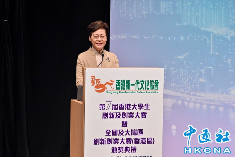•   香港特區行政長官林鄭月娥11月27日在第7屆香港大學生創新及創業大賽暨全國及大灣區創新創業大賽(香港區)頒獎典禮致辭。 香港中通社圖片