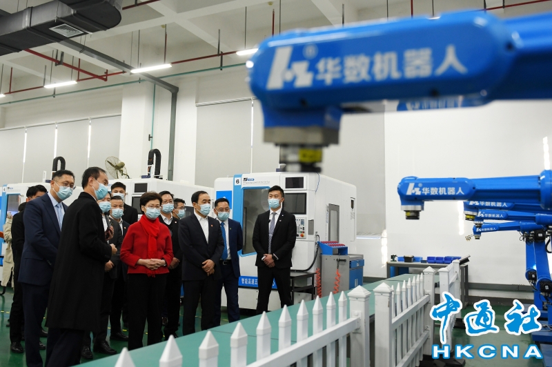 •   香港特區行政長官林鄭月娥11月30日在武漢考察武漢東湖新技術開發區。圖為林鄭月娥(右六)在湖北省副省長趙海山(右三)陪同下,考察區內一間主要科技企業。 香港中通社圖片