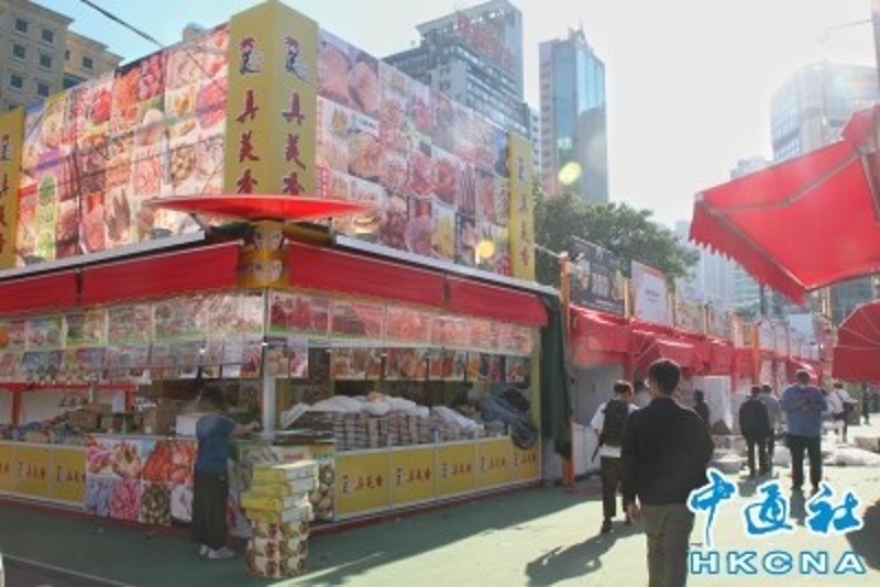 圖為10日媒體預覽。(香港中通社記者 曹文毓攝) 展位之間相隔數米的過道中擠滿顧客,他們放下腳步邊走邊看;員工站在展位前舉著產品招徠顧客,不少展位還已推出新年禮包,紅色的禮品包裝,竟突然產生一些年味兒。