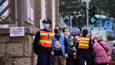 香港新聞網12月19日電 香港立法會選舉12月19日上午8時半開始投票,全港設逾600個投票站。當日8時半,香港特區政府保安局局長鄧炳強已來到位於天光道24號地下獻主會聖馬善樂小學的投票站,他於投票現場慰問長者,並排隊入場投票。
