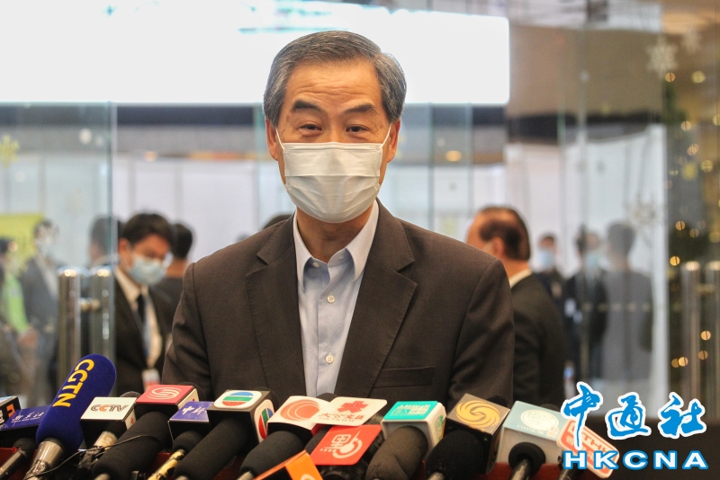 •   12月19日,香港特區第七屆立法會選舉正式舉行,全國政協副主席梁振英一早來到香港會議展覽中心投票,並呼籲市民踴躍投票。(香港中通社記者 曹文毓攝) 香港中通社圖片