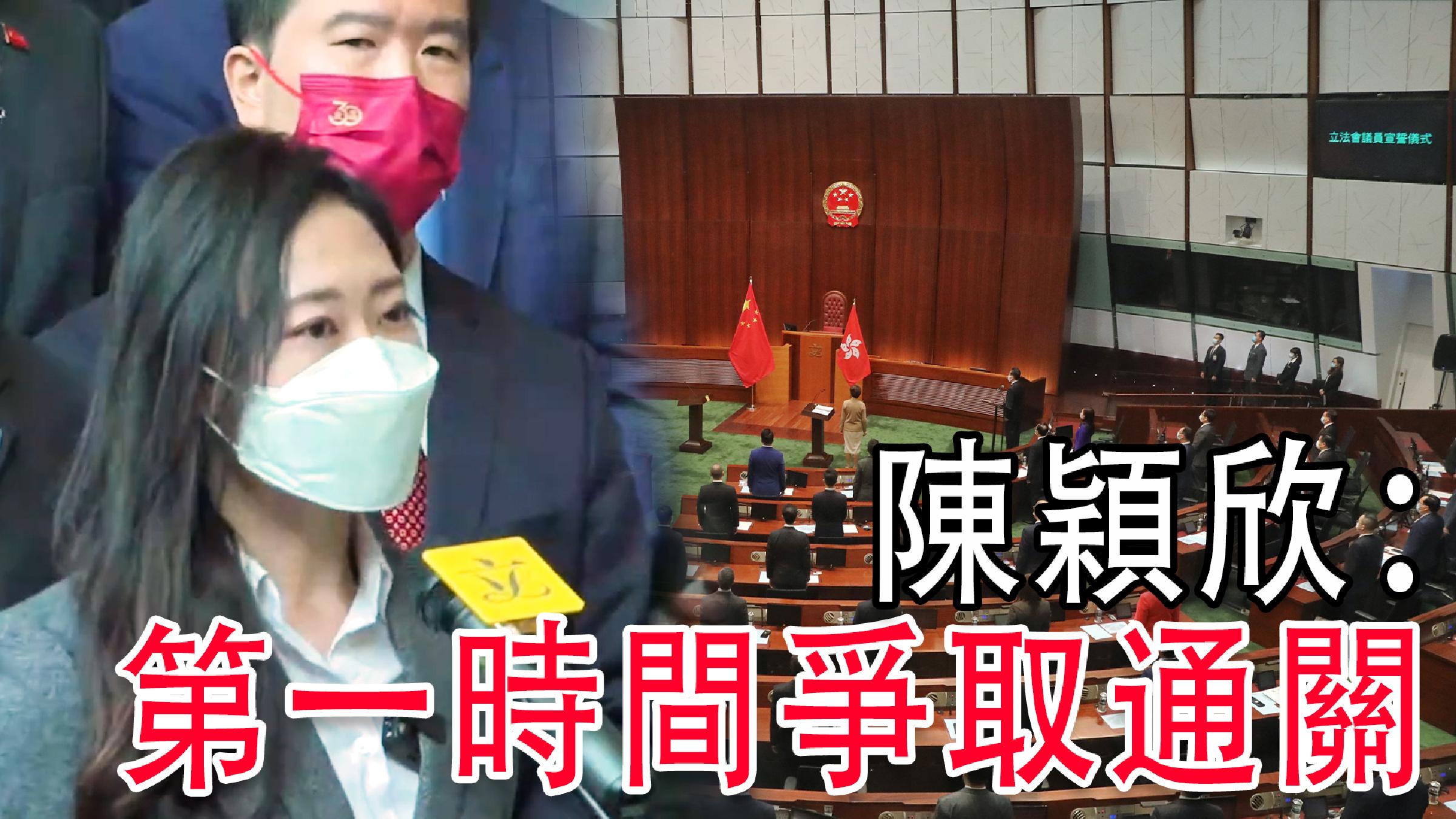 宣誓現場除了高懸的國徽,在主席台上還擺放了國旗區旗,這也是立法會議員首次在國徽下宣誓,宣誓前齊唱國歌。(記者 崔靜雯)