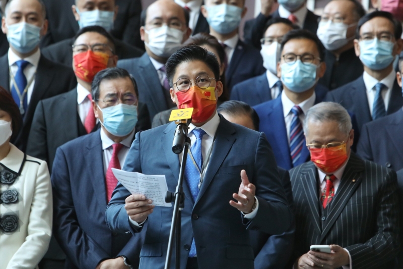 完善選舉制度下的首場立法會選舉去年12月19日投票,90名立法會議員中背景“五光十色”,除了成功連任的傳統政黨議員外,有將近70%的“議員新丁”加入了立法會。 當中,有21名立法會議員是港區全國人大代表或政協委員,另有8名是省級或直轄巿政協,整體占議會近三分一。“議會新丁”中,還不乏具一定學術水平的智庫學者、大學教授。 相比起上一屆立法會議員宣誓時穿短袖、拉橫幅的荒唐喧鬧現場,本次宣誓有不少亮點:首次由特首親自監誓、首次在宣誓儀式上奏唱國歌、首次在國徽下宣誓、首次宣誓人必須穿商務服裝、首次全場戴口罩下宣誓。