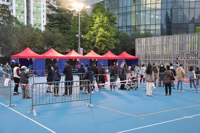 圖為維園手球場的檢測中心大排人龍。(香港中通社記者 謝光磊 攝) 8間社區檢測中心包括九龍東的油塘社區會堂、觀塘牛頭角道體育館;九龍西的九龍城土瓜灣體育館、梁顯利油麻地社區中心;新界東的大埔太和體育館、粉嶺和興社區會堂;以及新界西的屯門兆麟社區會堂、元朗市東社區會堂。 除社區檢測中心外,市民亦可使用設於多區的流動採樣站接受檢測。政府再次提醒須接受強制檢測的人士,以及持“安心出行”潛在感染通知或收到衛生署衛生防護中心電話短訊通知的人士盡快進行檢測,費用全免。 【編輯:馬華】