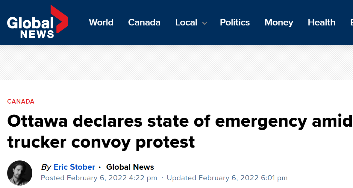 加拿大首都渥太華宣佈進入緊急狀態 加拿大環球新聞網報道截圖 渥太華警察局局長皮特·斯洛利怒斥,渥太華“是一個被包圍的城市”,“這是一場全國性的暴動”。