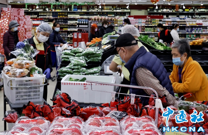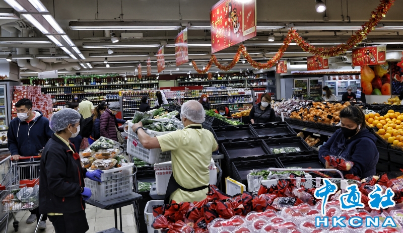 香港超市蔬菜區市民爆滿 店員忙補貨