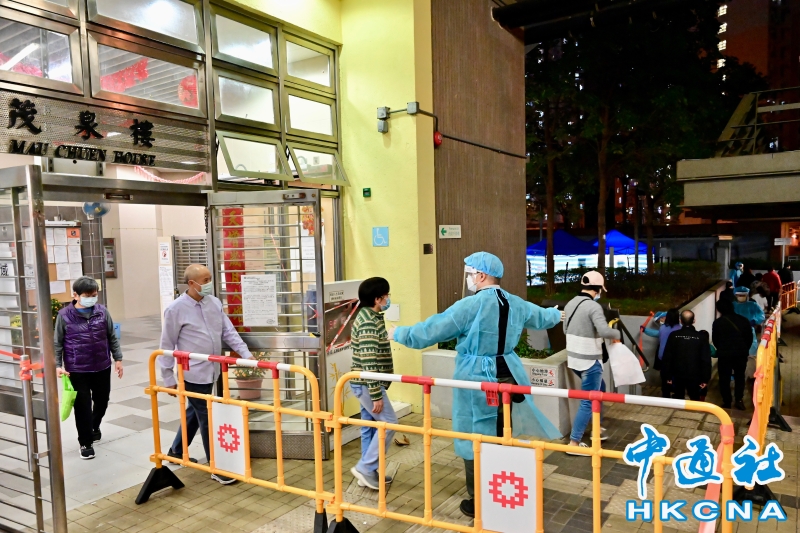 •   受到疫情個案影響,香港特區政府2月13日晚將沙田水泉澳邨茂泉樓列為“受限區域”,13日早上10時半完成強制檢測行動,當中發現8宗初步陽性個案。 香港中通社圖片