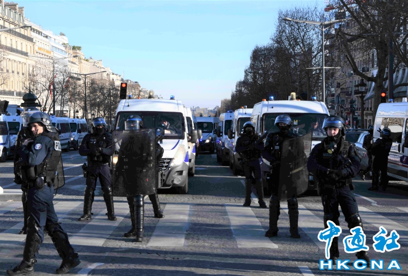 •   當地時間2月12日,巴黎警方阻止示威者車隊在市中心堵塞交通,已有數十人被警方逮捕。圖為警方當天在香榭麗舍大街嚴密戒備,禁止車輛通行。 香港中通社圖片