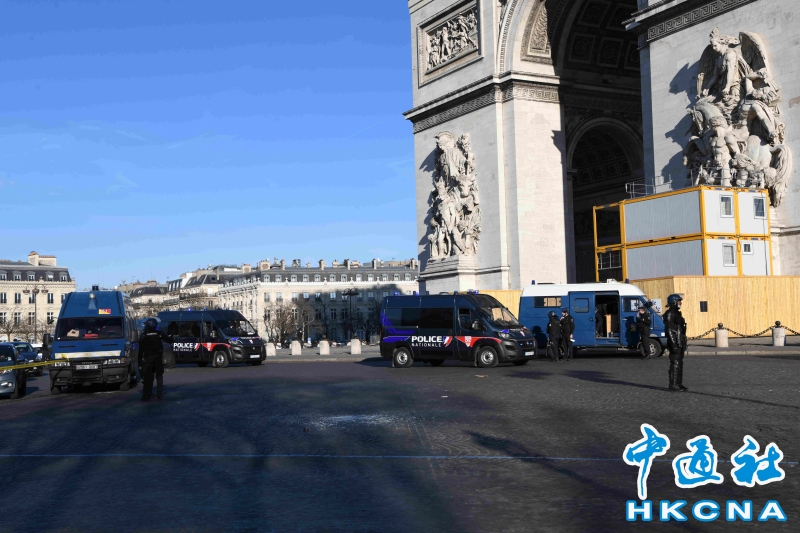 •   當地時間2月12日,巴黎警方阻止示威者車隊在市中心堵塞交通,已有數十人被警方逮捕。圖為警方當天在凱旋門嚴密戒備,防範示威者車隊阻塞此地。 香港中通社圖片