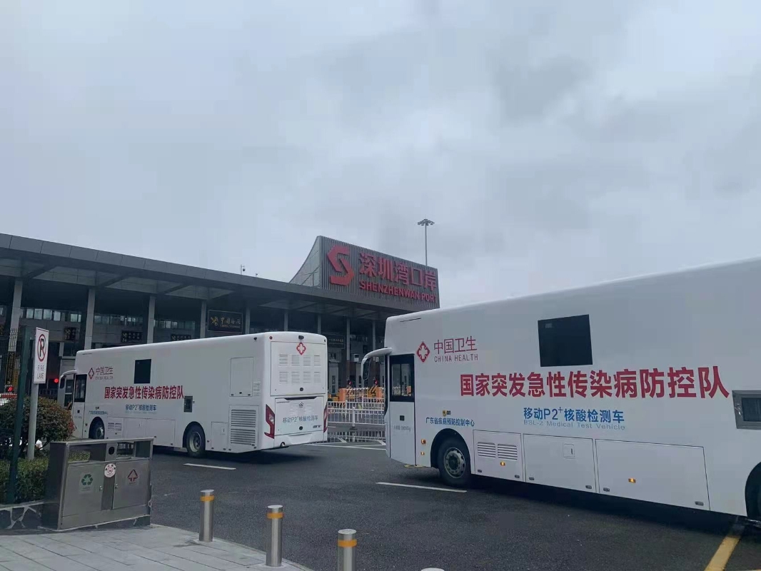 香港中通社2月17日電 內地17日派出首批支援香港抗疫的流行病學專家組及移動核酸檢測車來港。服役於廣東省疾控中心的三輛移動P2+核酸檢測車,當天通過深圳灣口岸抵達香港。