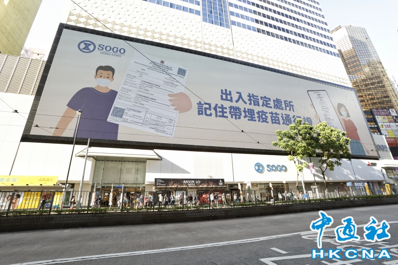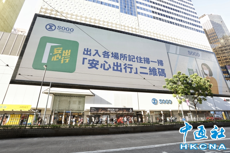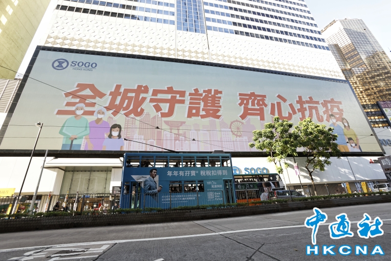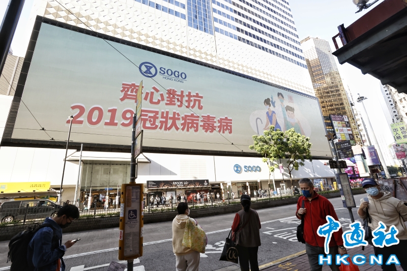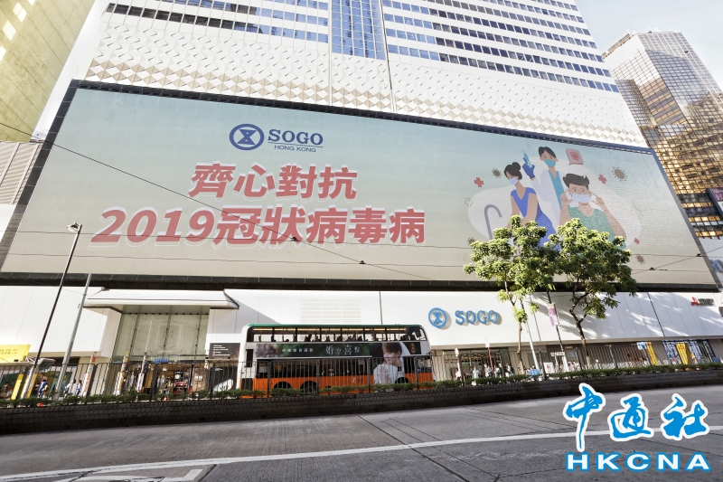 香港銅鑼灣SOGO外牆屏幕標語呼籲市民齊心抗疫分享到: