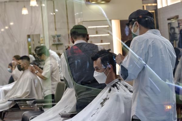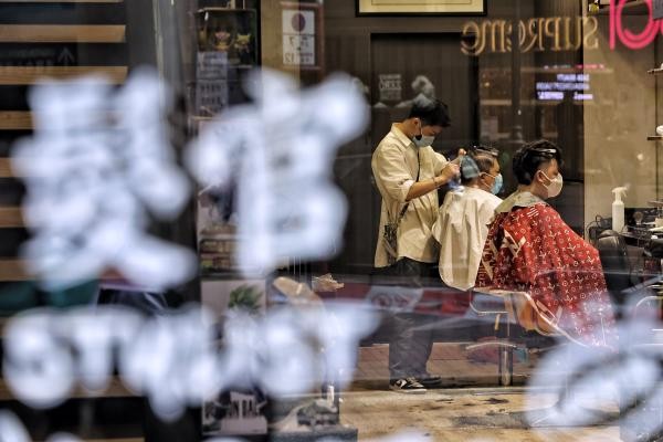 香港中通社記者 許其皓 攝 在香港鬧市油尖旺地區經營老牌理髮店的梁先生告訴香港中通社記者,當日來剪頭髮的顧客多於預期,但只是早前疫情平穩時的一半客流量,預計可能市民擔心疫情,也可能因為一些顧客還未得悉理髮店營業的消息。 對於特區政府容許理髮屋營業,他認為,安排很突然,前兩日一直在進行清潔、準備毛巾等工作,但能重新開業對於業界是件好事,“政府補助始終不如自己開門掙錢好。”