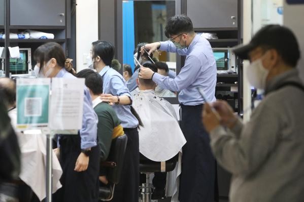 香港中通社記者 謝光磊 攝 有髮型師表示,政府突然允許理髮店營業,打亂顧客原本的預約,不少顧客希望把預約提前,料這一周營業狀況將十分樂觀。