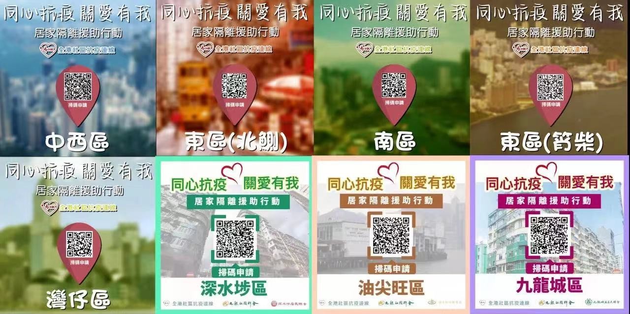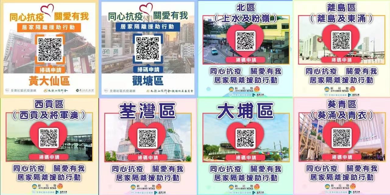“全港社區抗疫連線”各區隔離援助二維碼 求助熱線打不通,試試這些方法 目前香港民政事務總署為“居安抗疫”計劃設立的24小時電話熱線(1833 019)已投入服務,為在計劃下進行家居檢疫的人士提供支援和協助。 但染疫人數眾多,熱線經常打不通,香港消防處日前設電郵、WhatsApp熱線、微信帳號,安排輕症染疫者送往隔離設施。