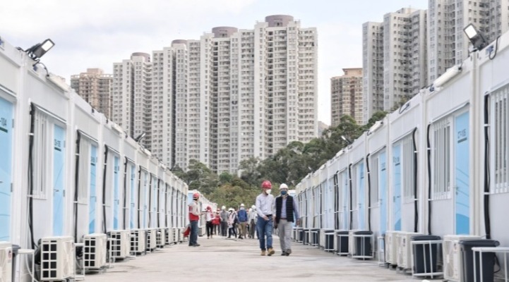 港官談建方艙:通宵達旦與疫症競速香港中通社3月13日電 地上剛落成的箱式房屋鱗次櫛比,白色的牆體上貼著“爭分奪秒抗疫”的橫幅。這塊被高樓和深山懷抱著的土地,空中俯瞰就好似一把鑰匙。這里是由中央援建的粉嶺方艙醫院,也是香港特區政府建築署署長何永賢的“戰場”。 今年2月,第五波新冠疫情日趨嚴峻,醫療設施爆滿之時,又恰逢氣溫驟降,眾多患者冒著寒風等候在急診室外,隔離設施不足成為抗疫瓶頸。