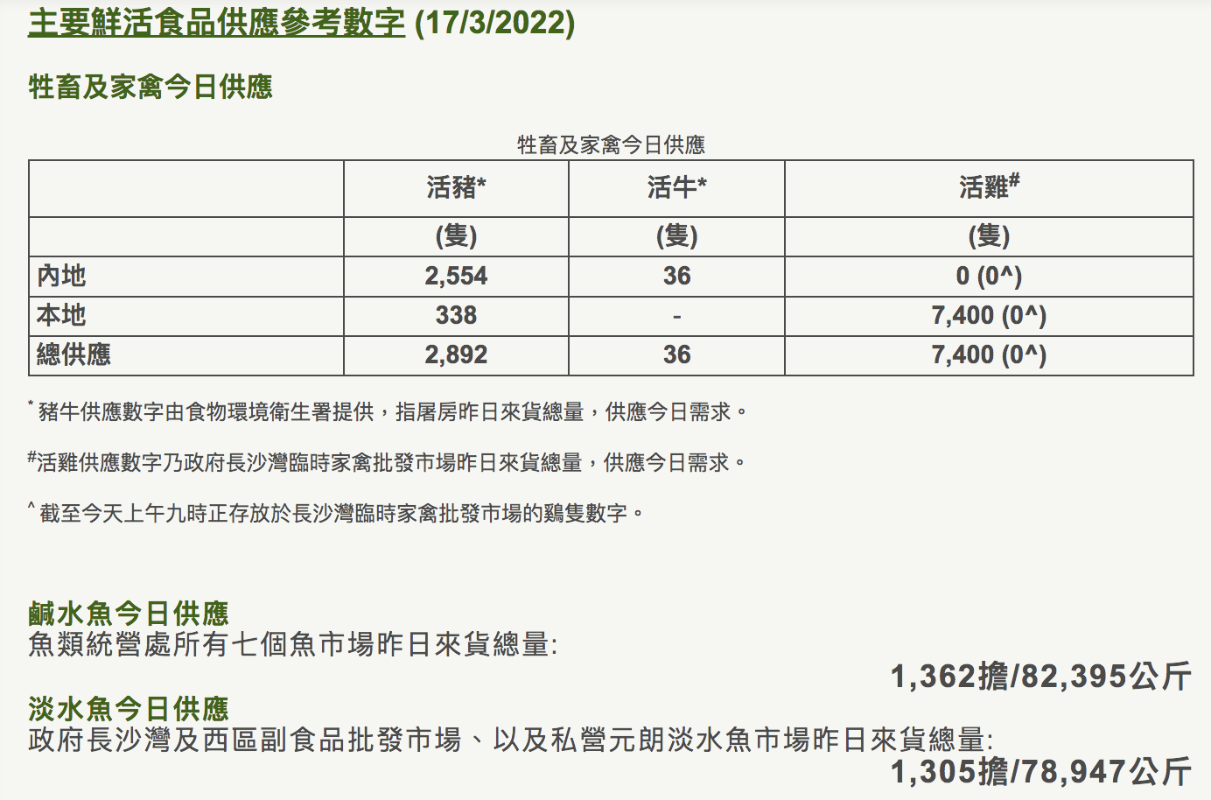 昨日內地進口本港的冰鮮豬肉貨量約51公噸,與平日供應量相若,而活豬供應亦充裕。 內地供港冰鮮家禽昨日貨量超過13萬隻,而本地屠宰的活雞則超過9500隻,供應亦相當穩定。 政府會繼續與內地當局及業界保持密切聯絡,確保內地供港鮮活食品供應順暢。 【編輯:刘春】