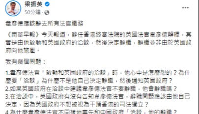 通說:這兩位英藉法官走就走,還說三道四香港新聞網4月1日電 英國最高法院院長韋彥德(Robert Reed)及副院長賀知義(Patrick Hodge),當地時間30日晚突然以“國安法讓其背棄政治言論自由”等為由,辭任香港終審法院非常任法官。對此英國惡意打“法官牌”,借機搞政治操弄,引起香港法律界人士質疑。特首林鄭月娥31日說,有合理懷疑相關事件是有一定政治考慮及鋪排。 本次辭職的兩位法官分別于2017年和2021年就任。其中,韋彥德去年8月曾在一份聲明中強調“香港仍維持司法獨立”。時隔數月卻態度大變,並在聲明中指,“香港國安法實施後,香港的行政機關已經偏離政治自由及言論自由,英國政府及最高法院都認同,不能繼續參與香港的審訊。”