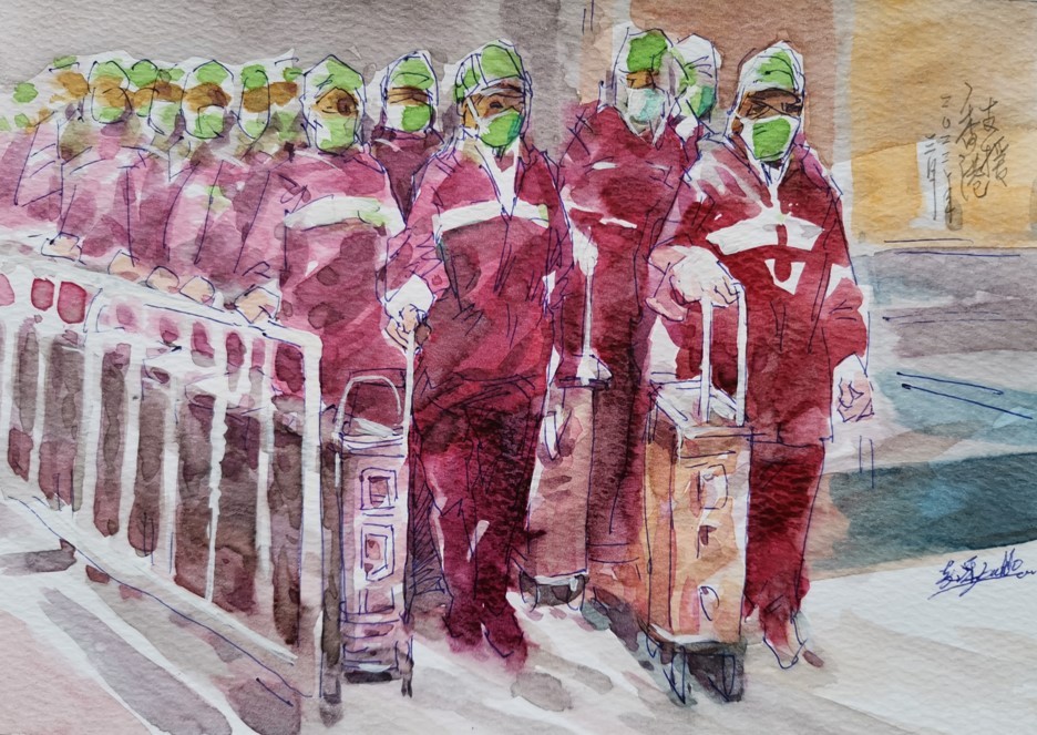 香港新聞網4月6日電 由藝術香港、金紫荊藝術研究院、香港美協、香港大公文匯傳媒集團等機構聯合主辦的“人民至上 生命至上——香港抗疫美術作品展”啟動以來,備受文化界乃至社會的關注。活動自2022年2月底開始,已有一百三十名畫家踴躍報名,精心創作,作品收集近200幅,現每天組委會都會收到畫家報名和寄來作品。