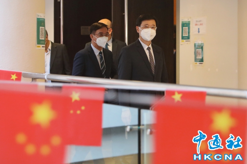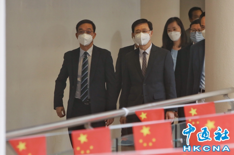 •   4月11日,香港特區政府前政務司司長李家超拜訪新界鄉議局。(香港中通社記者  謝光磊 攝) 香港中通社圖片