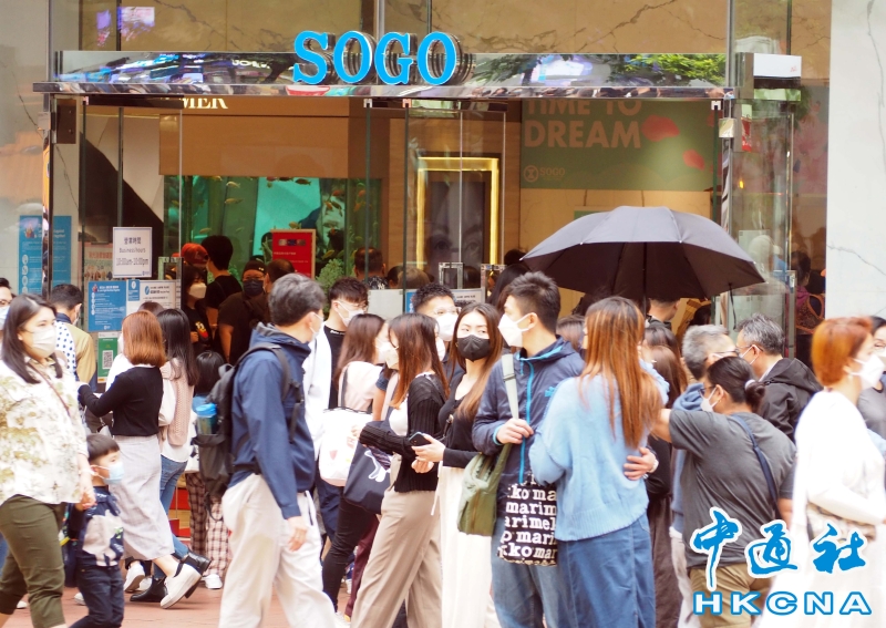 •   5月2日,香港五一假期最後一天,銅鑼灣商圈人流絡繹不絕,大批市民出外消費消遣,受惠於政府派發消費券和疫情放緩,市面零售業和餐飲業生意逐漸好轉。 香港中通社圖片
