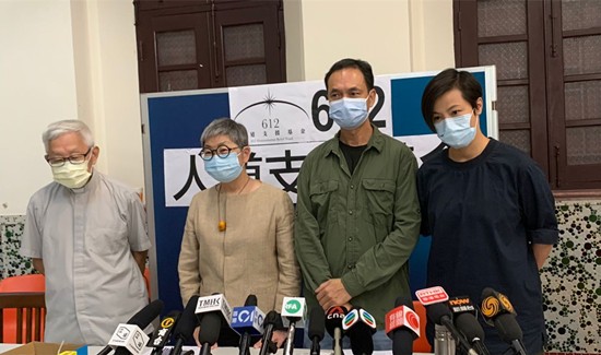 吳靄儀(左二)、陳日君(左一)、何韵詩(右一)及許寶強(右二)四嫌犯獲准保釋。(大公文匯全媒體資料圖) 此外,國安處按照《香港國安法》第四十三條及《實施細則》附表二,向被捕人士發出由裁判官簽發的通知書,要求他們向警方交出所有旅行證件。警方亦向法庭申請傳票控告上述人士及另外一名37歲男子沒有遵循《社團條例》要求,為”612人道支援基金”作出註冊。 【編輯:王軼南】