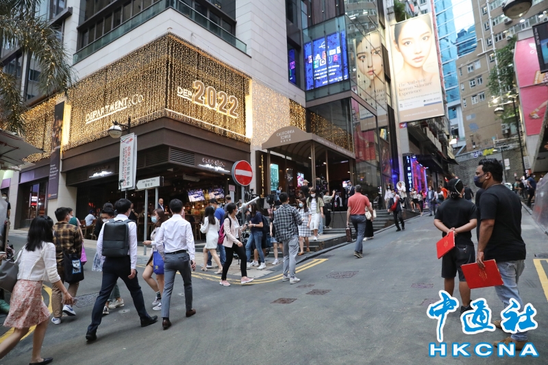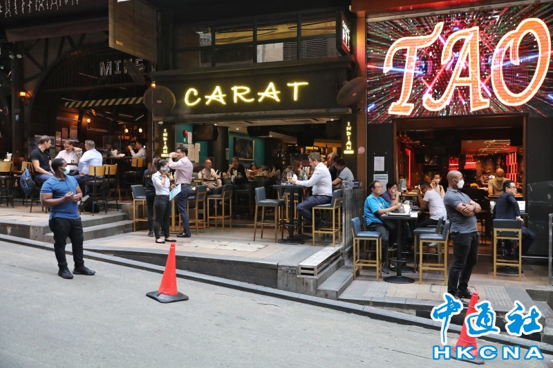 •   5月19日傍晚,香港中環蘭桂坊人流逐漸增多,有酒吧業界預計,生意可以恢復七至八成。當天,香港第二階段放寬社交距離措施實施,酒吧、酒館可以重開並可營業至凌晨2時。(香港中通社記者  謝光磊 攝) 香港中通社圖片