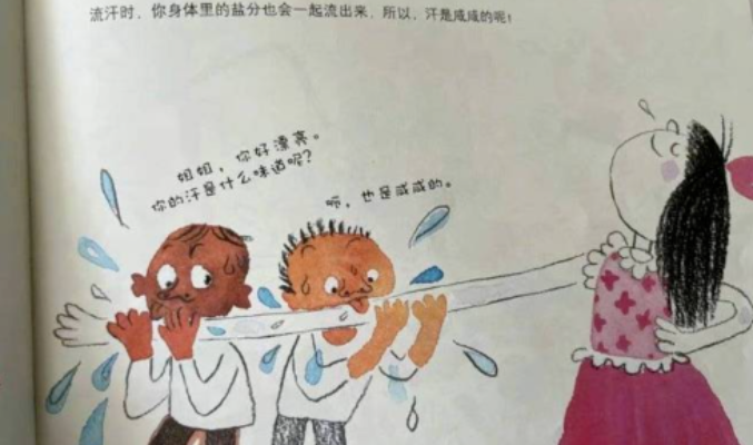 除兒童被畫得“醜態畢露”外,插畫中的國旗還被畫倒了……