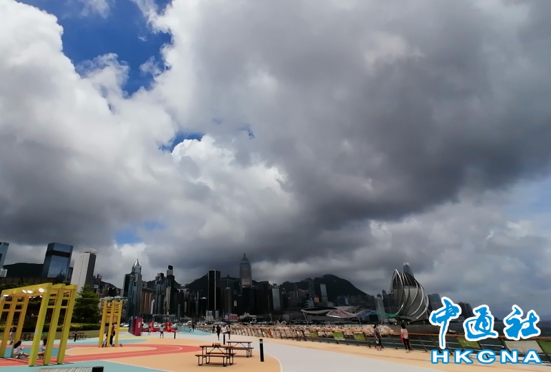 •   6月5日,香港維港天空風雲變幻。當天,天文台預告,華南北部的低壓槽靠近廣東沿岸,香港周二至周五期間會有大驟雨及狂風雷暴。(香港中通社記者 許其皓攝) 香港中通社圖片