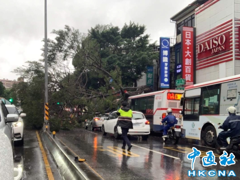 •   6月6日,台灣台北市士林區一棵直徑約60公分的樹在風雨中突然斷裂倒塌,壓到路過的公車車頂和3輛小客車,公車上約有10名乘客,幸好現場無人員受傷。 香港中通社圖片