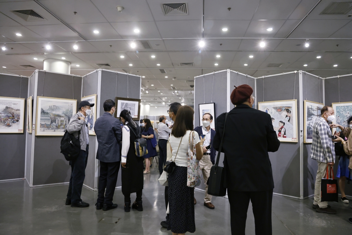 觀眾在參觀“人民至上 生命至上——香港抗疫美術作品展”。 【編輯:洪少葵】
