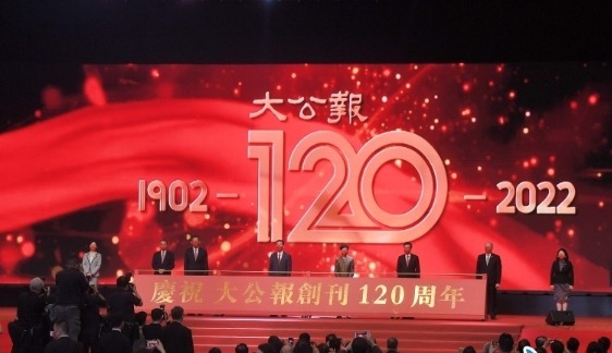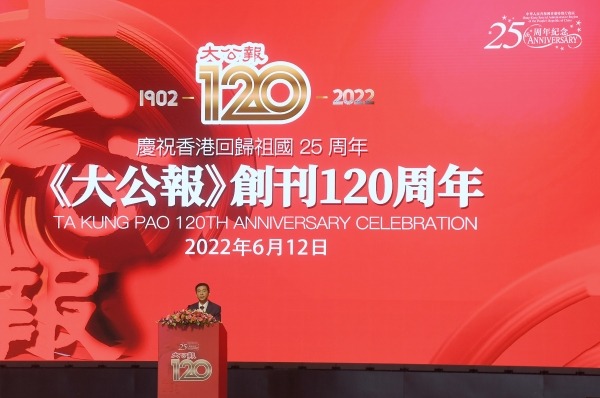 大公文匯全媒體報道:今年是香港回歸祖國25周年,亦是大公報創刊120周年。大公報創刊120周年慶祝儀式今日(12日)下午2時在香港會議展覽中心舉行,中央政府駐港聯絡辦主任駱惠寧宣讀中共中央總書記、國家主席、中央軍委主席習近平對《大公報》創刊120周年的賀信,並發表致辭,勉勵《大公報》牢記習近平總書記囑託,以創新發展不斷擴大傳播力影響力,為“一國兩制”實踐行穩致遠,為實現中華民族偉大復興的中國夢書寫更為精彩的時代篇章。