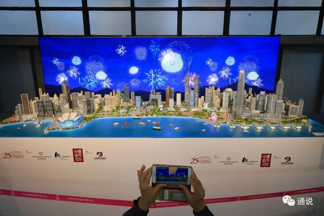 香港中通社許其皓攝 這些微縮藝術,“不單是藝術的多元,還有我們古今建築的多元,以及人民生活的多元。”香港特區行政長官林鄭月娥出席展覽開幕典禮時這樣說到。 此刻,身在香港,俯瞰香港,維港煙花劃過天空,奪目璀璨。