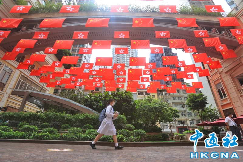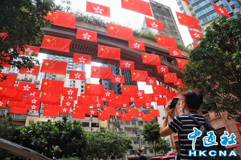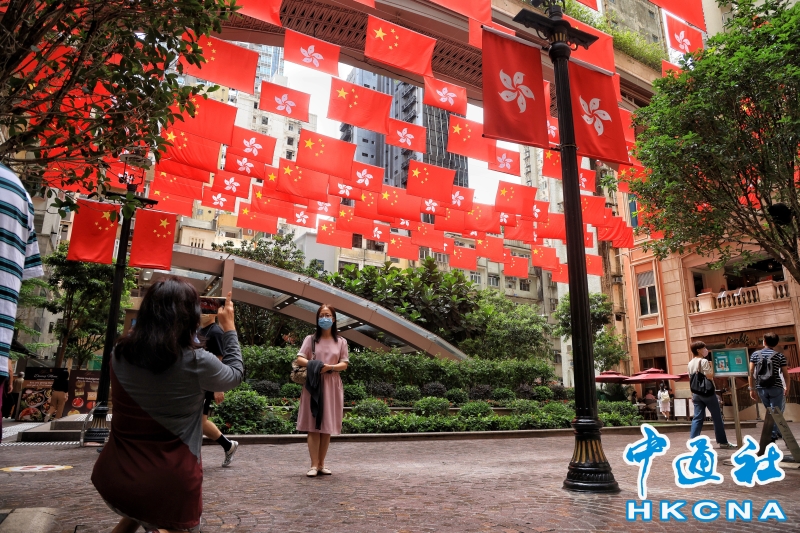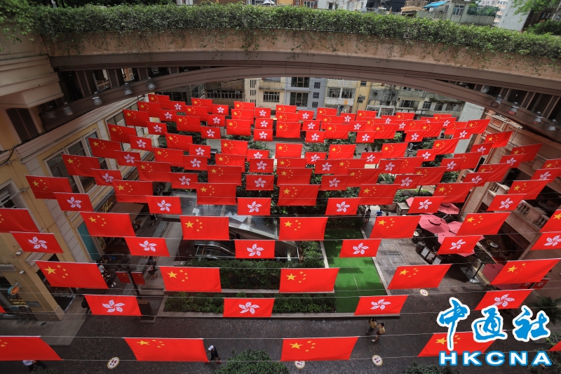 香港街頭現“旗海”慶祝回歸祖國25周年分享到: