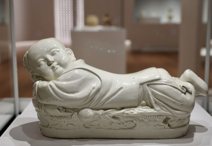 香港故宮文化博物館 展廳3最珍貴的藏品之一,是由北京故宮博物館借出,宋代五大名窯之一“定窯”所燒造的“白釉孩兒枕”,同類傳世品極其罕見,清代乾隆皇帝甚愛,更曾為其賦詩多首。而孩兒枕只會在港展出3個月。