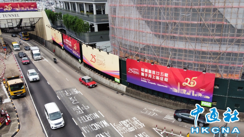 香港海底隧道口亮眼廣告慶回歸25周年分享到: