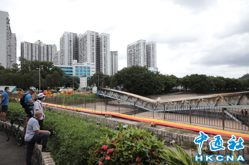 •   6月22日,香港元朗宏樂街朗屏站附近一條中電電纜橋。電纜橋在21日晚上7時許起火,導致元朗及天水圍一帶大範圍停電,更波及屯門,16萬戶受影響,其中兩萬戶預計要兩個工作天才恢復電力供應。(香港中通社記者張海德攝) 香港中通社圖片