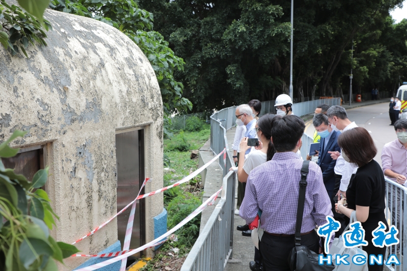 •   6月22日,香港中電派員視察火警意外地點。元朗宏樂街朗屏站附近一條中電電纜橋,21日晚上7時許起火,導致元朗及天水圍一帶大範圍停電 。 香港中通社圖片