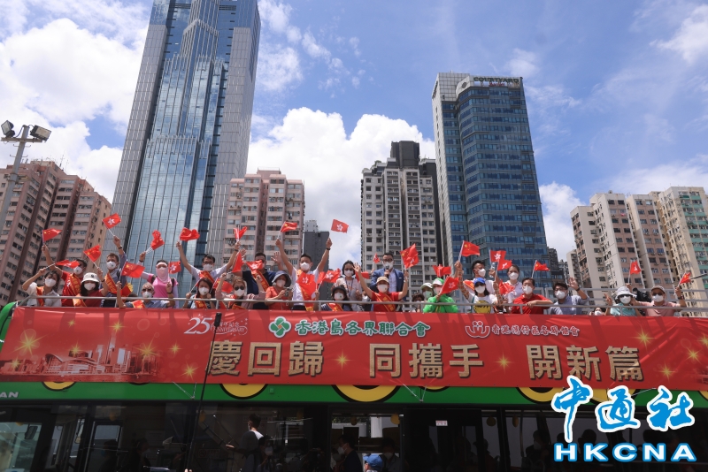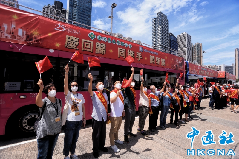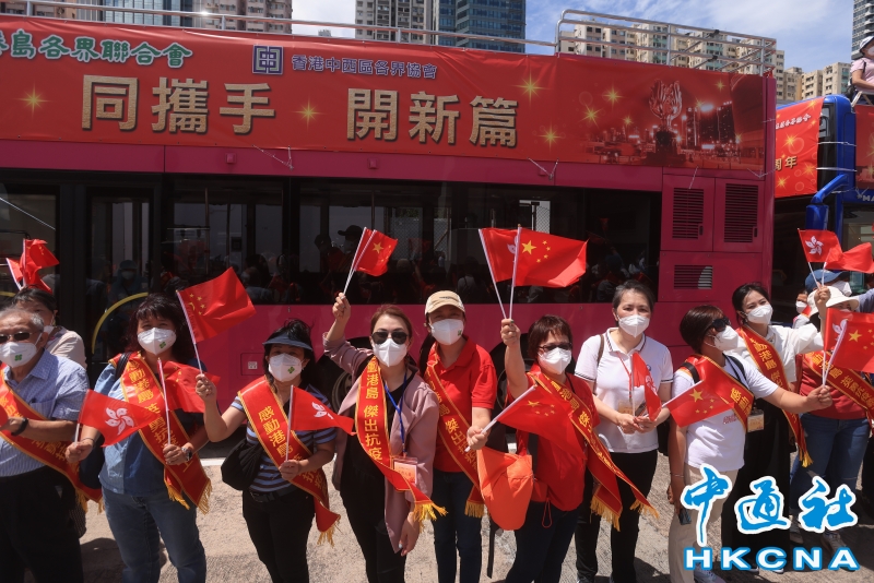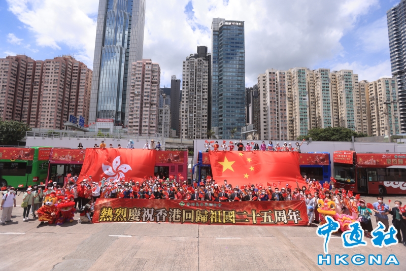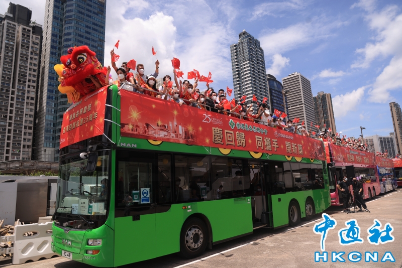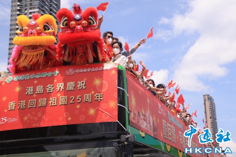 香港島各界聯合會舉行巴士巡遊慶祝回歸分享到:
