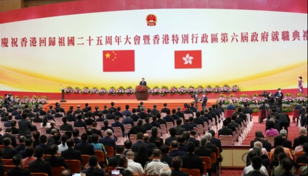 特區第六屆政府宣誓就職。圖源:政府新聞網 《文匯報》發表社評表示,總書記始終關心香港,為香港全面準確落實“一國兩制”指路引航,親自支持、謀劃香港發展大計,充分顯示對香港的深情厚意。回首過去幾年,以總書記為核心的黨中央審時度勢,果斷決策,標本兼治,確保了香港“一國兩制”實踐行穩致遠,證明“一國兩制”是保持香港長期繁榮穩定、維護港人福祉的最佳制度,“一國兩制”的強大生命力充分彰顯。 《大公報》社評指出,總書記抵港後的講話,溫暖人心,表達了對香港無與倫比的關愛,體現了對香港發展的高度重視,極大地鼓舞了香港社會,極大地激勵了港人。總書記的心和中央政府的心始終同香港同胞在一起,中央是香港的最堅強後盾,這是香港戰勝一切挑戰、迎來更美好未來的最大底氣所在。 《香港商報》社評指出,習主席的到來,帶來了中央對香港的全力支持和全國人民的美好祝願。事實證明,“一國兩制”具有強大生命力,是確保香港長期繁榮穩定、維護香港同胞福祉的好制度。這25年,是香港重新納入國家治理體系,“一國兩制”由科學構想變為生動現實,並在實踐中不斷探索完善,展現出強大生命力和制度優越性的進程。 《明報》社評表示,國家主席雖然在港逗留時間短暫,但已充分突顯對香港回歸25周年的重視。香港需要拋開新自由主義經濟迷思,力保民生、助基層。 《星島日報》社論認為,習主席此行打破慣例,從他選搭高鐵而非乘坐飛機來港的安排,釋出兩個重要訊息。一是高鐵將香港和大灣區距離收窄,原本幾小時車程縮短成一小時生活圈,兩地變得更緊密,習主席用行動展現香港與內地可進一步深度合作,將大灣區打造成宜居宜業宜遊的優質生活圈。二是對高鐵作為中國科技自主創新典型代表予以肯定,從而帶出此行旨在宣揚創新驅動發展戰略,要在科技自立自強上取得進展。(完) 【編輯:凌玉辉】