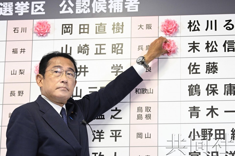 7月10日晚岸田文雄在東京黨總部計票中心向當選者名字貼上小花。(共同社) 具體議席數為自民黨63、立憲民主黨17、公明黨13、日本維新會12、共產黨4、國民民主黨5、令和新選組3、社民黨1、NHK黨1、參政黨1、其他5。 【編輯:王軼南】