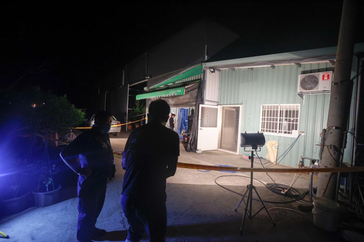 南投縣14日晚發生行刑式槍擊命案釀成4死1重傷 香港中通社圖片 依照當地警方通報,歹徒14日下午先闖入公司廠房外約20米遠的民宅,將賴姓負責人弟弟與劉姓課長趕進厠所後開槍,兩人均頭部中彈,歹徒隨後進入廠區,槍擊賴姓負責人、負責人女兒及張姓主任。賴姓負責人頭部中傷送醫急救,其餘4人皆當場死亡。